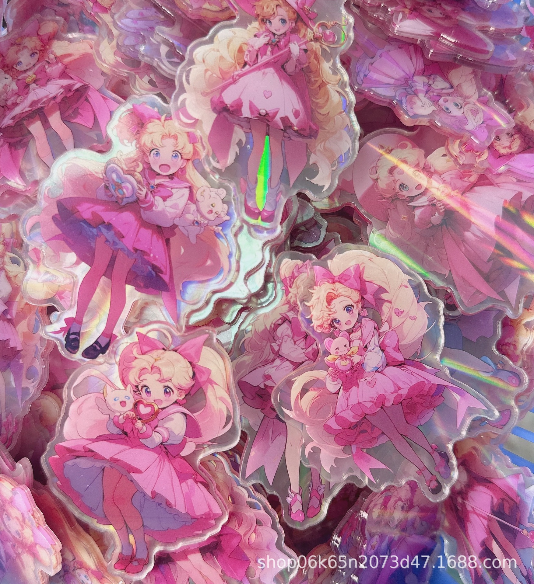 Tiktok Wholesale Laminated Laser 4Cm Acrylic Patch Diy Acrylic Patch Accessory Piece Pink Girl